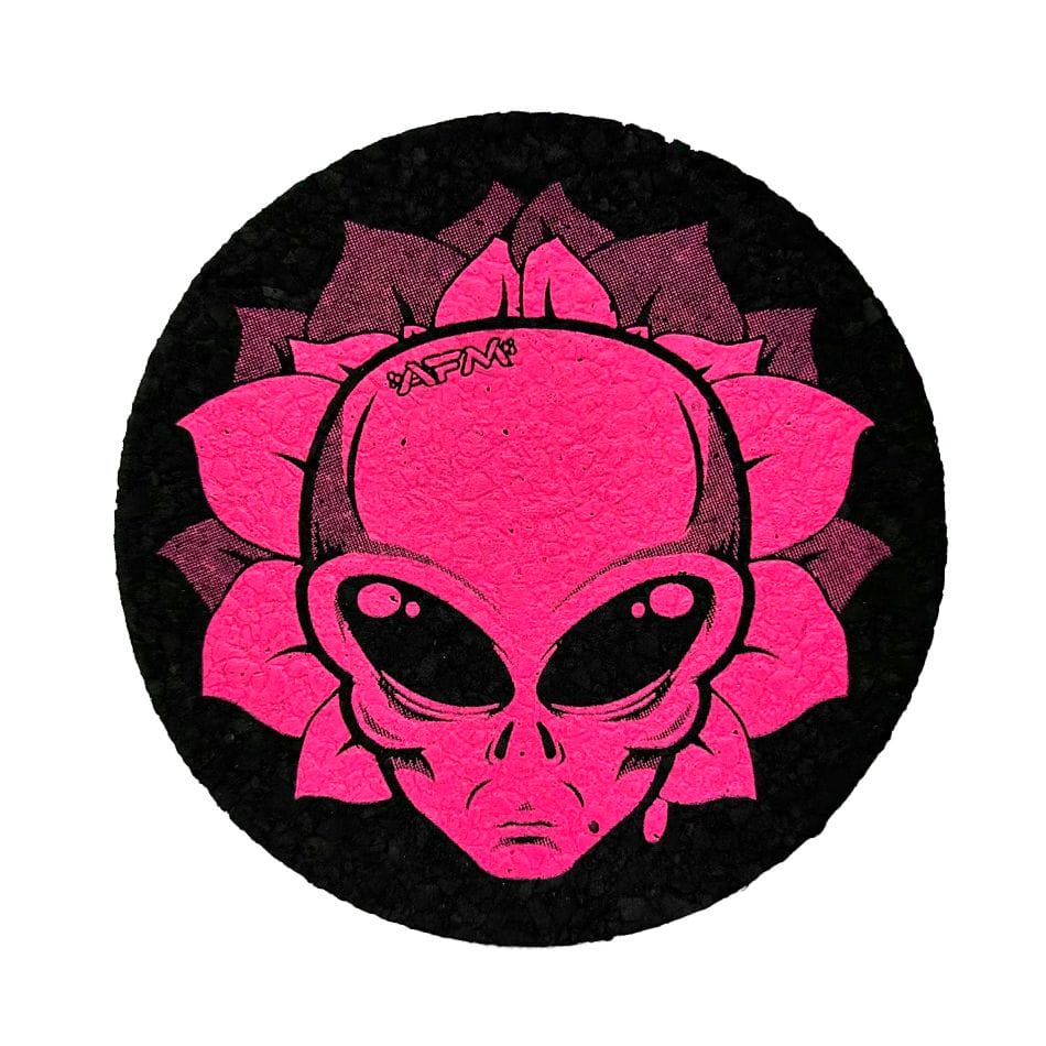 Overall, the 5″ AFM Alien Head Circle Mood Mat combines functionality with aesthetics, making it a must-have accessory for any smoking enthusiast. With its durable recycled rubber material, stylish Alien Head logo, and various color choices, this mood mat adds a touch of personality and protection to your smoking experience. Let your smoking piece rest in style with the AFM Alien Head Circle Mood Mat!