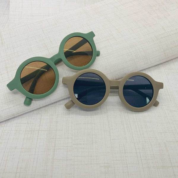Trendy round frame sunglasses in fun colors. Kid’s size.