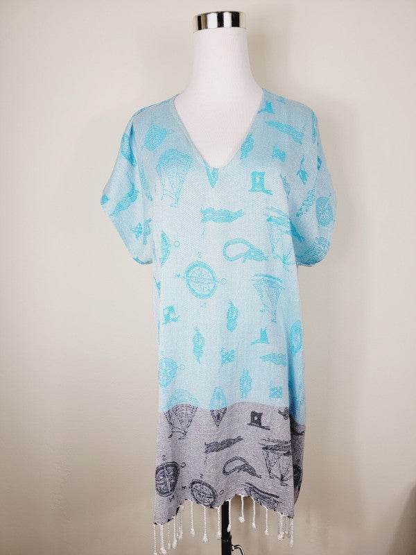 One size FITS ALL! Hand made dress top, You can wear as a top casually or it can be cover up. Dress has different color and tassel ends gives authentic look.100 % Turkish Cotton