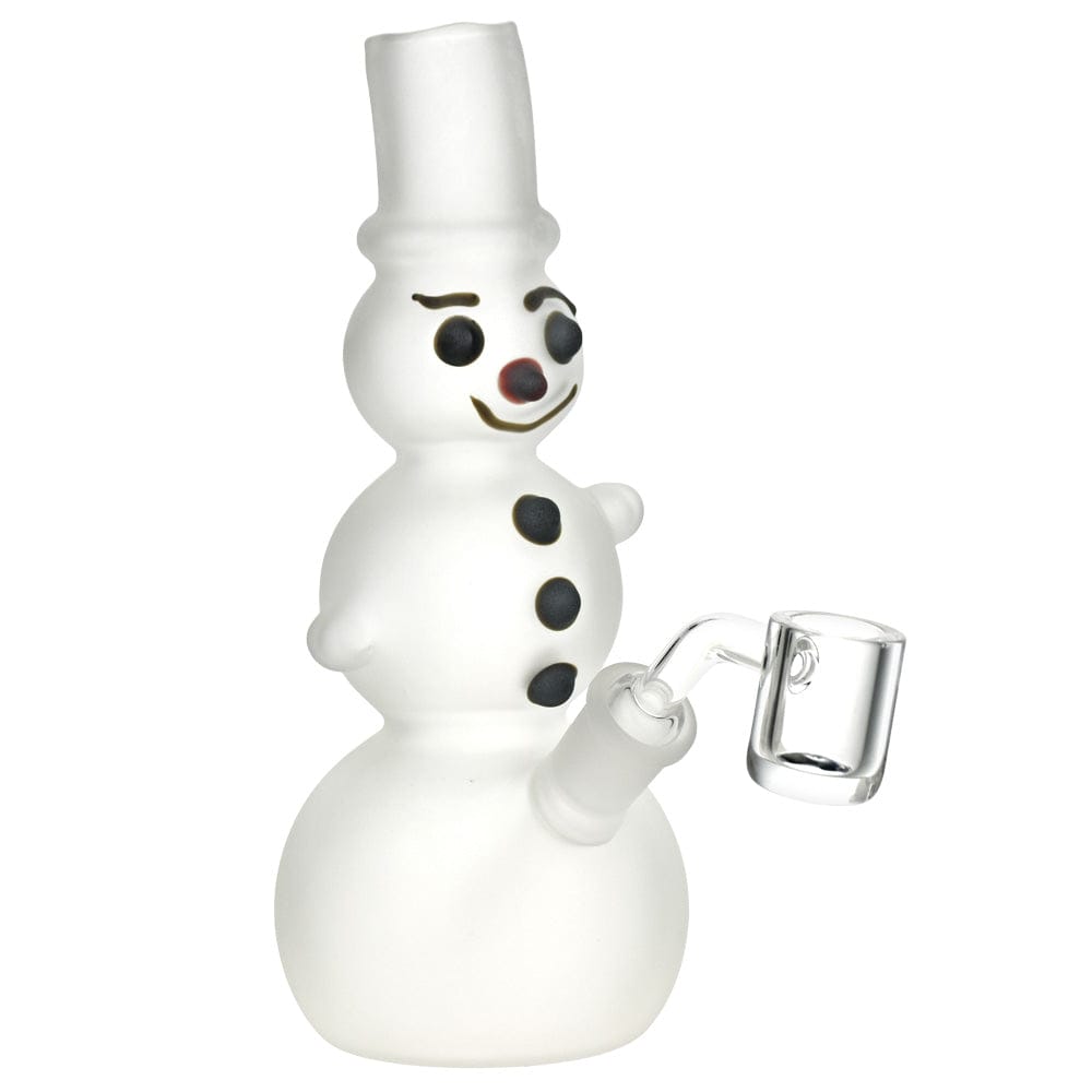 7 inches tall Novelty dab rig Seductive snowman design Glow in the dark accents Fixed downstem Frosted borosilicate glass Includes 14mm male quartz banger