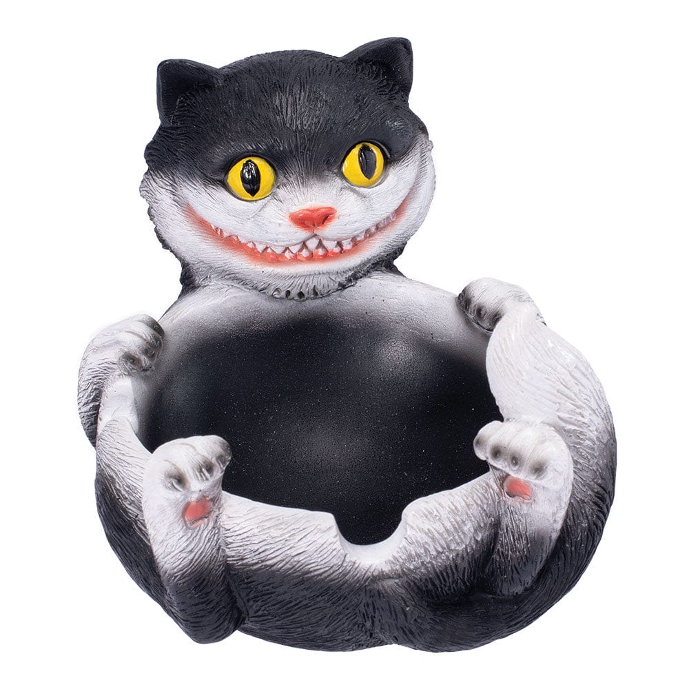 5 inches by 3.5 inches Polystone ashtrays Trippy tuxedo cat design Built-in cigarette rests