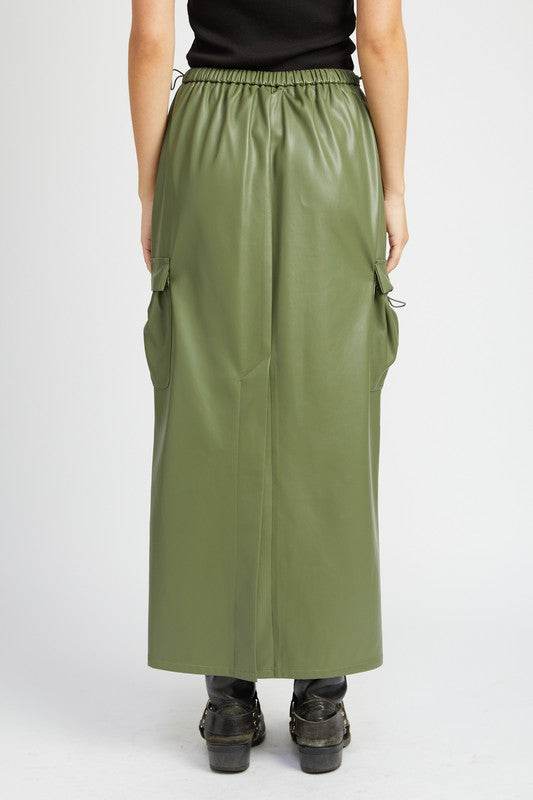 LEATHER CARGO MAXI SKIRT