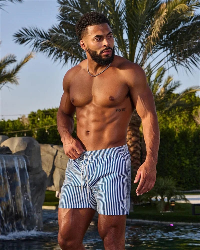 These men’s vintage-style sports shorts from Sexikinis Swim are crafted with knit polyester for comfort and durability. Designed with a striped pattern, they fit true to size, making them perfect for running or beach activities. Free from harmful chemicals, these shorts combine style and performance effortlessly.