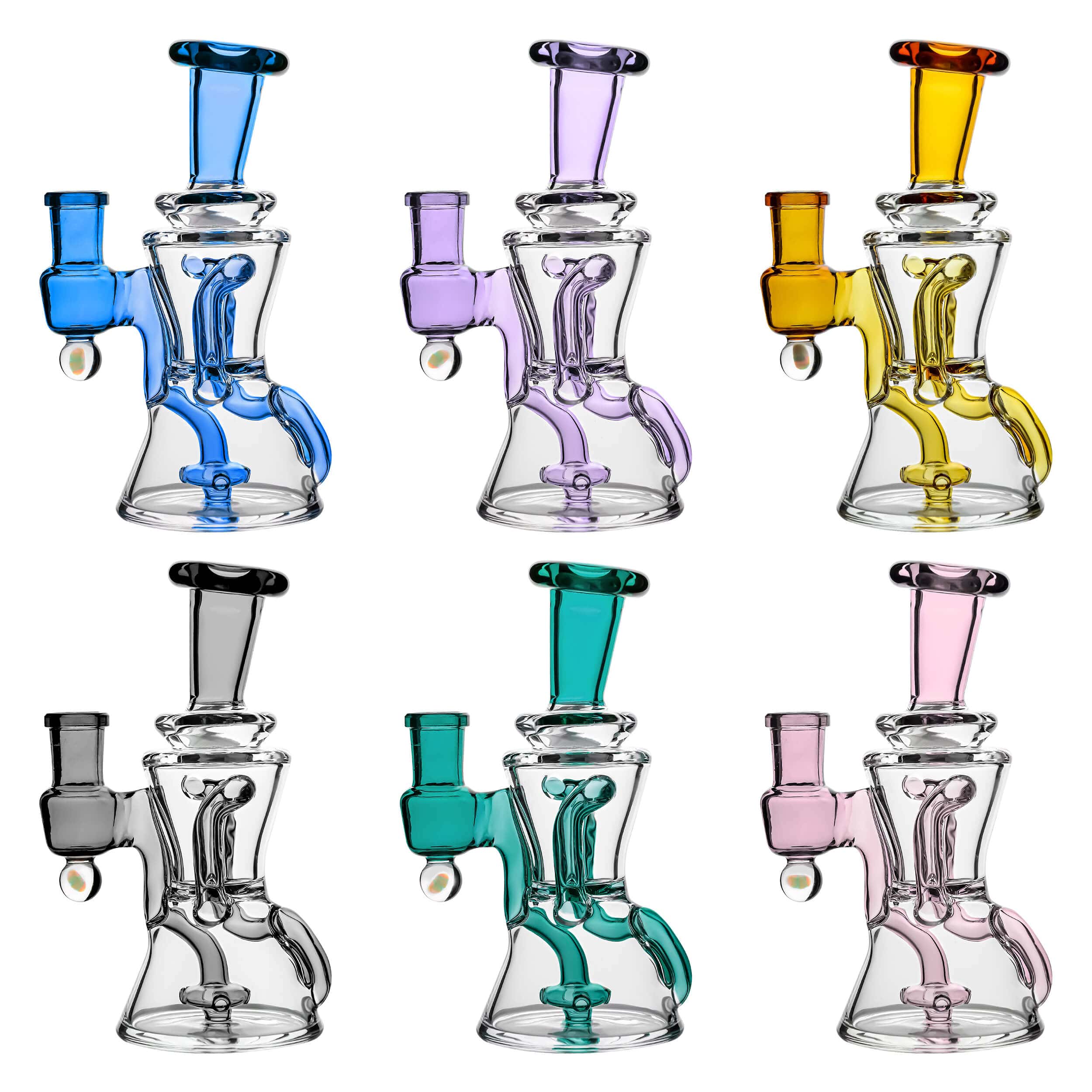7.09Inch Hand Crafted mini recycler Joint:14mm Height:7.09inch You will not be disappointed once you have it,with PINHOLE perc. It will ship with a quartz banger
