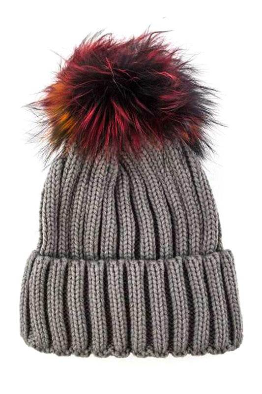 One Size Hat – 100% Acrylic PomPom – Genuine Racoon Fur Pom