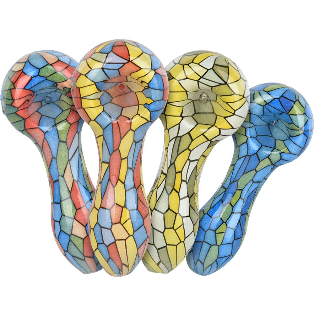 Mosaic Colorful Print Glass Hand Pipe – 3.75″ / Colors Vary