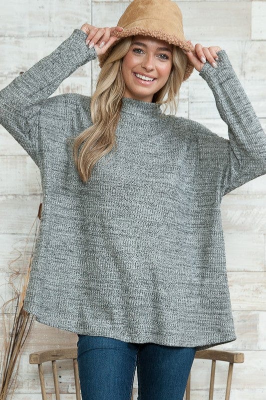 Oversized light sweater knit in 2 tone rib fabric with drop shoulder long sleeve.