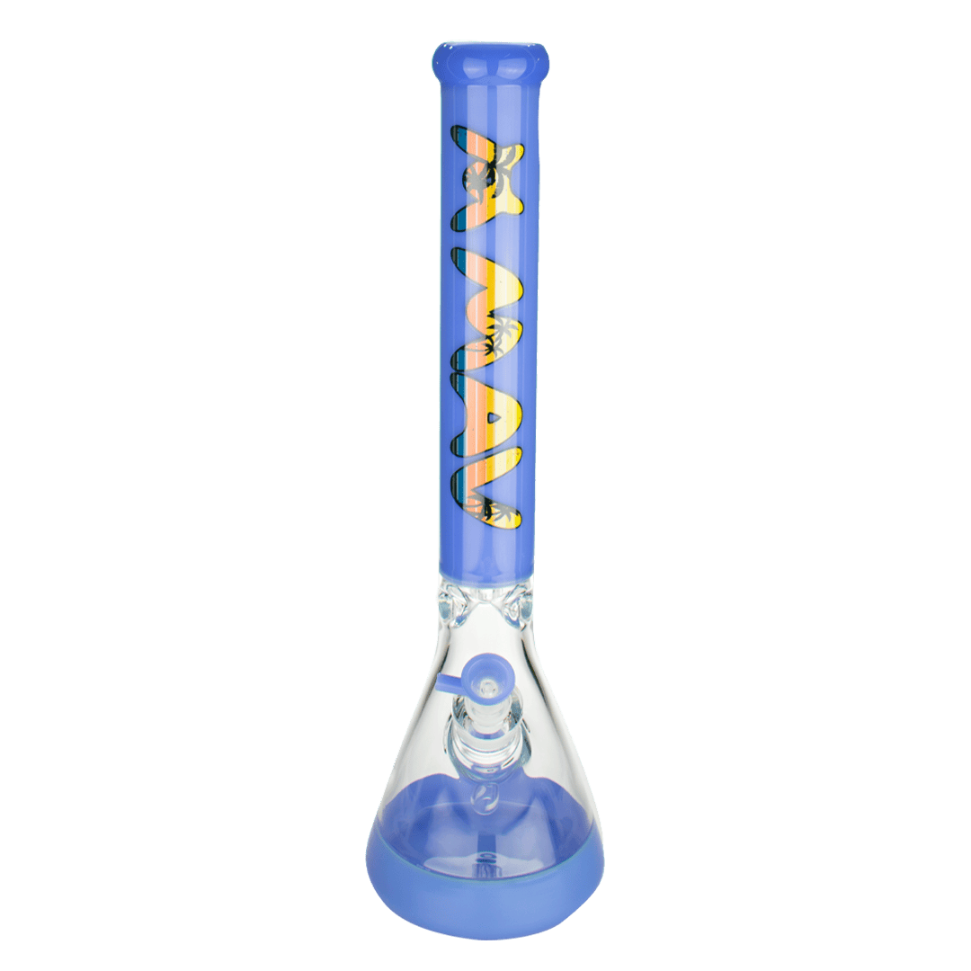 This full-color beaker tube stands at 18”, features a 19mm to 14mm removable diffused downstem, comes with a 14mm matching color male bowl, and also an ice pinch for extra cooling. This highly functional bong will be sure to please and may quickly become your daily driver whether you’re a beginner or a pro.