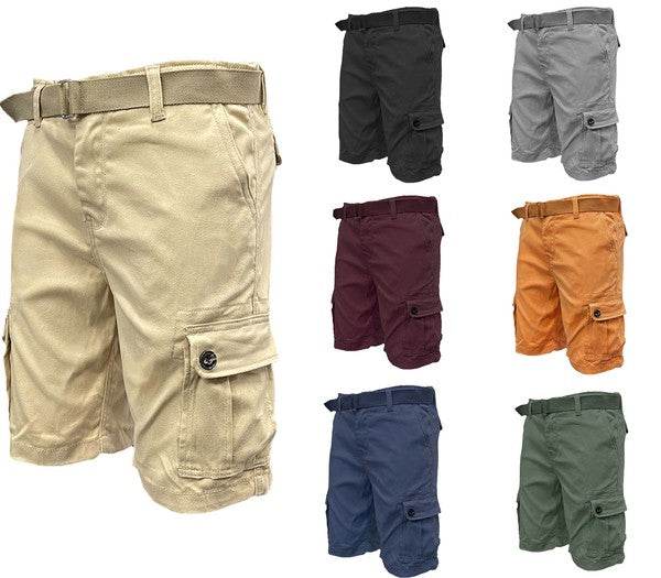 CARGO SHORTSSIDE POCKETS WITH BUTTON CLOSUREREGULAR FITKNEE LENGTH SHORTSBUTTON CLOSURE WAIST*COMES WITH BUCKLE CLOSURE BELTSTANDARD POCKETSTWO BACK POCKETS 98 COTTON 2 ELASTANE Fabric Contents: 0
